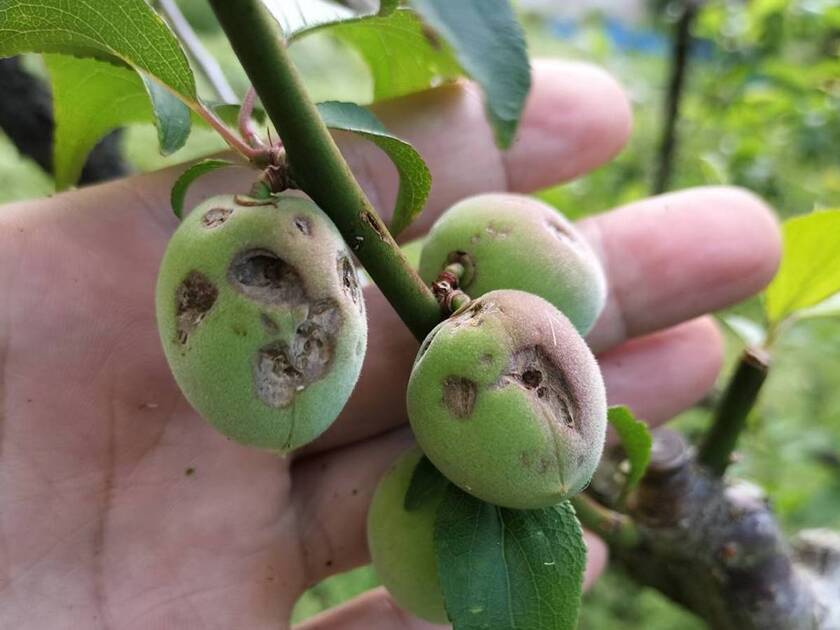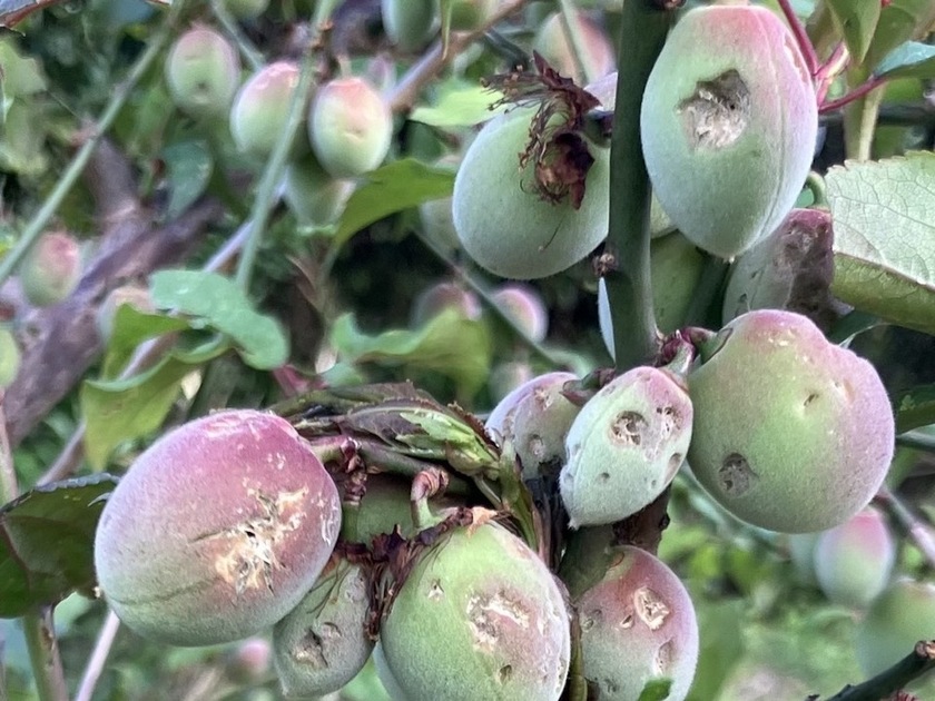 2025年は多いところで5回も雹が観測され、雹の直撃で実が落ちたり傷ついたりする被害が広範囲に及んでいます。