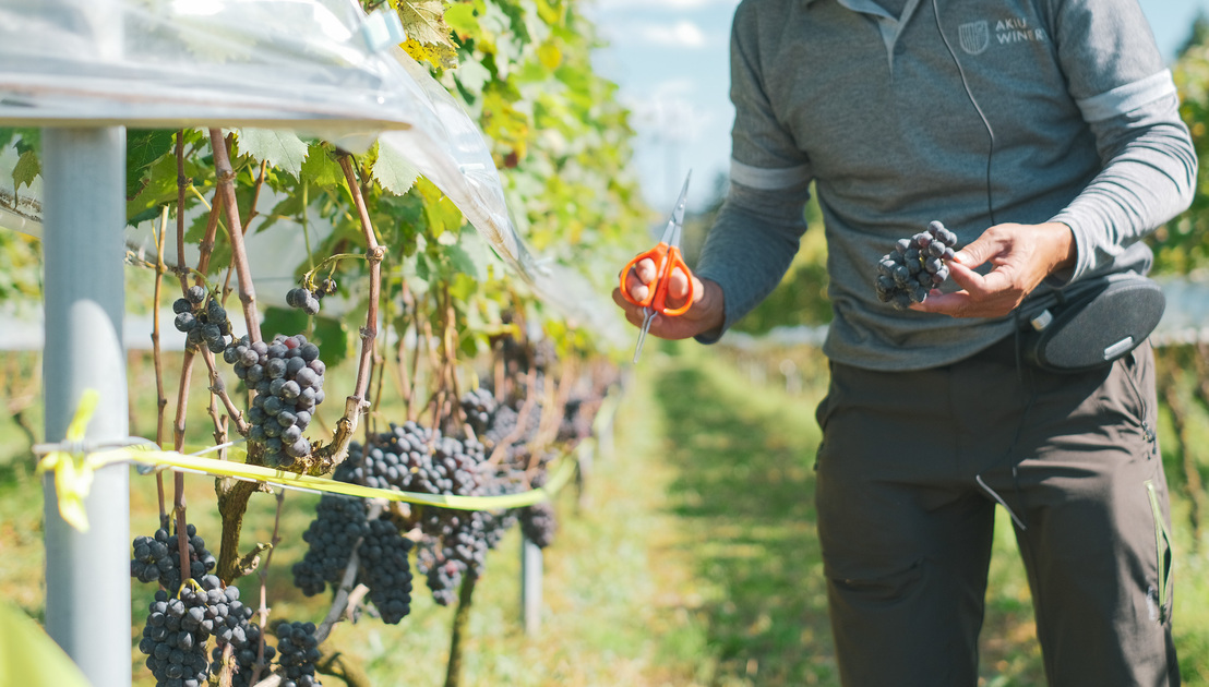 南北を山に囲まれた谷間に広がる自社農園は約2ヘクタール。名取川の渓谷から吹き上がる涼やかな風と、「秋保石」と呼ばれるミネラル豊富な凝灰岩(ぎょうかいがん)を含む土壌が、ここだけで生まれる個性豊かなワインを育んでいます。メルロー、ピノ・グリ、ゲヴュルツトラミネールなど10品種のぶどうを栽培し、その年のぶどうの表情を丁寧に引き出すワイン造りが続けられています。