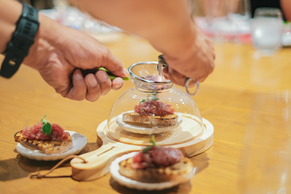 赤ワインとしめ鯖、シードルとマグロのトロ、ピノ・グリと牡蠣のアヒージョ――宮城ならではの食材と自家醸造ワインが生み出す組み合わせは無限大。訪れるたびに新しい発見がある、そんな場所です。
