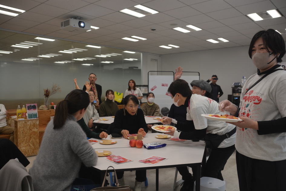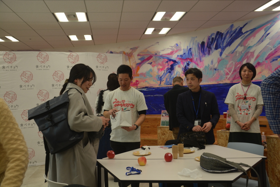 終盤になり、生産者の各ブースでジュースなどを試飲できる交流タイムに突入。外は雪がちらつく天気なのが信じられないほど、会場は熱い熱気に包まれていました。