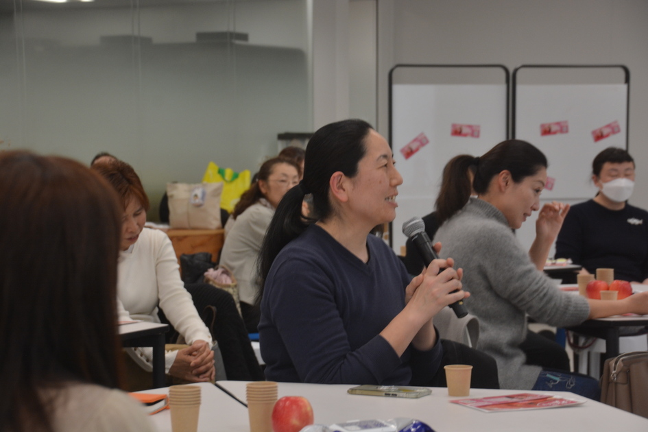 「自分ももともとは消費者で、ピンクレディー®に惚れ込んで作り手になった」という米山農園・米山さんや、「消費者のみなさんと交流するために、今日は小さい子どもたちを預けてやってきました」という信州安曇野フレンドファーム・福嶋さんなど、みなさんそれぞれのバックグラウンドを語ってくれました。
