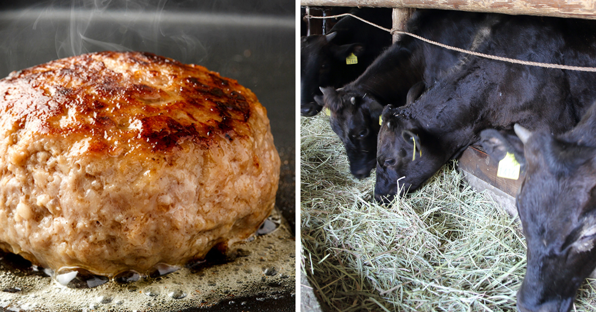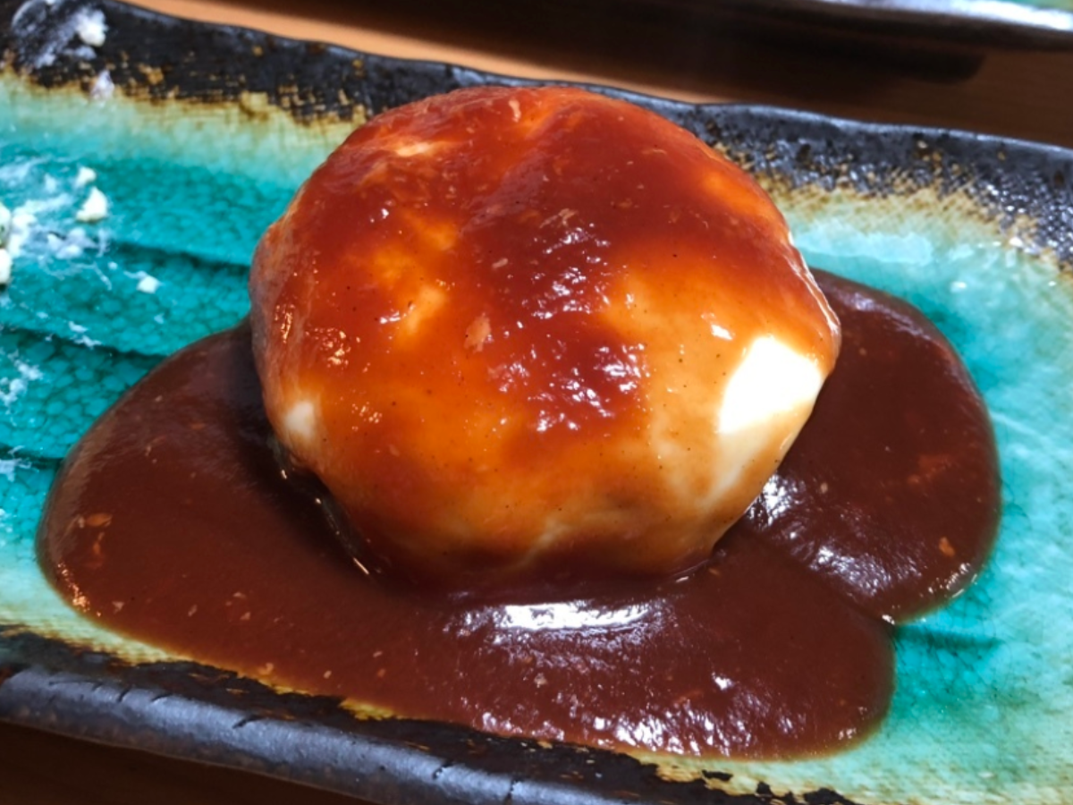 黒毛和牛と馬肉を使用した焼ハンバーグと特製ソースをセットでお届けします。
