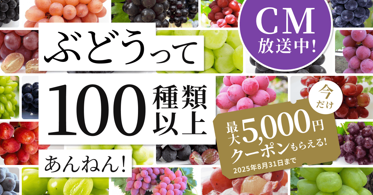現在旬まっさかりの「ぶどう」。食べチョクではぶどうの奥深さを伝えるCMを放送中!
