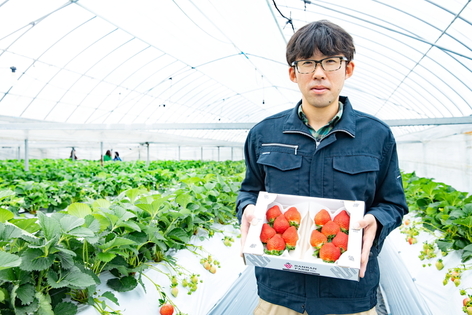 いちごの生産量全国2位の福岡県産で、ハリと艶があり濃厚な甘さの「あまおう」。栄養たっぷりの土で、丹精込めて作っています。