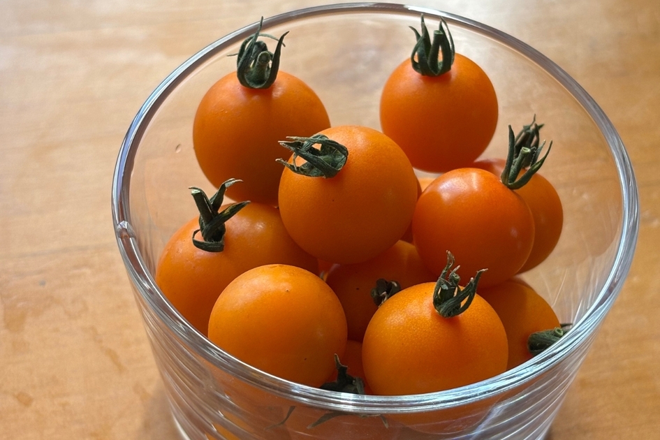 「オレンジ千果」は、見た目がツヤのある美しい見た目が特徴。オレンジ色のトマトは赤のトマトより甘くなさそう、と感じる方も多いと思いますが、侮るなかれ!トマトがあまり得意でなかったスタッフも、「これなら食べられる!」と驚くほどです!