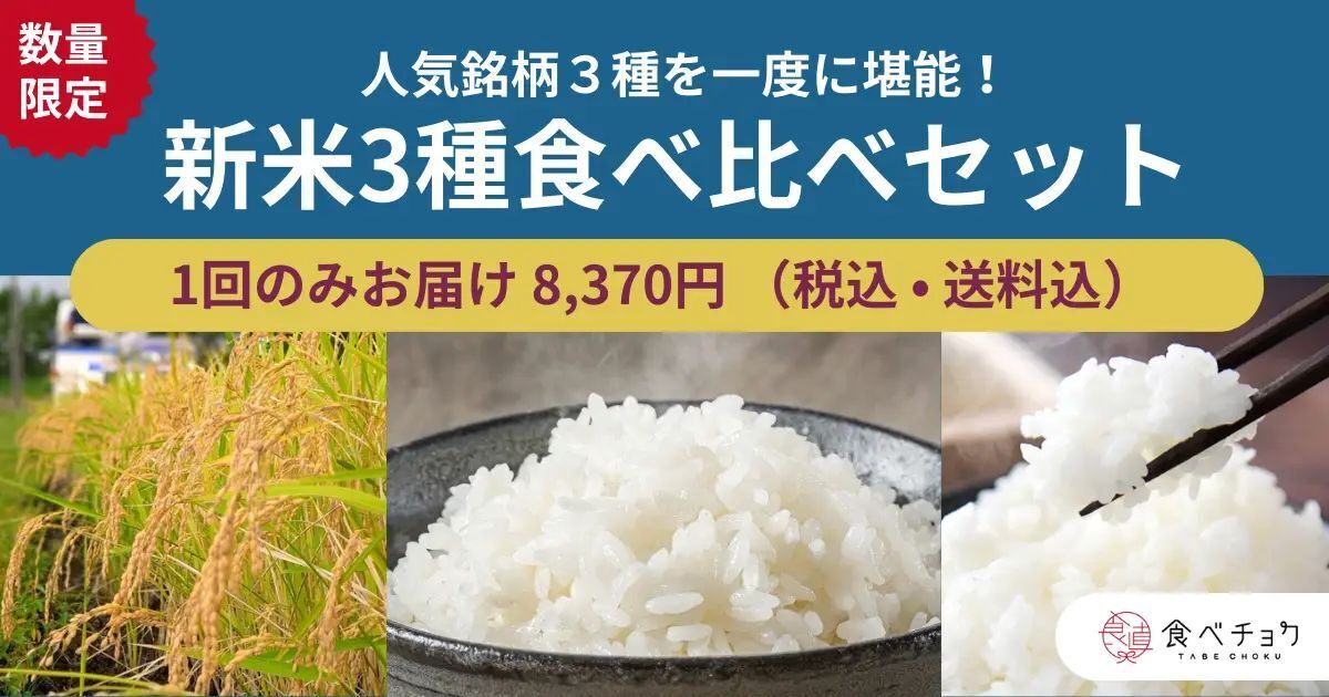 食べチョクで大人気の生産者から届く、厳選した新米3種類を食べ比べできる特別セット!