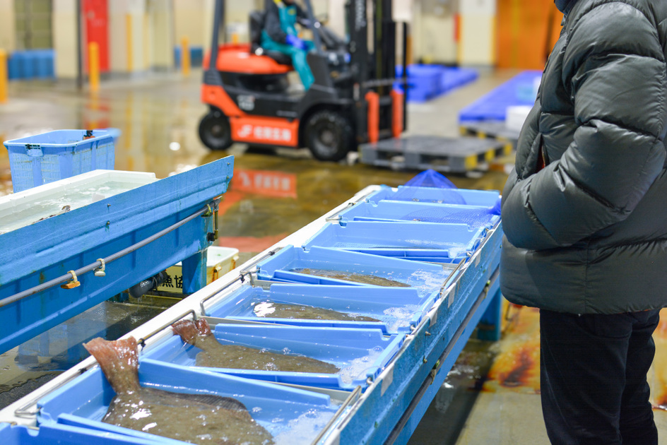 この魚市場の大きな特長のひとつが、全国でも珍しい「活魚の状態でセリが行われる」こと。水揚げされた魚は生きたまま市場に運ばれ、鮮度と状態を直接見極めながら取引されます。また、高度な冷凍・処理・梱包技術にも力を入れています。