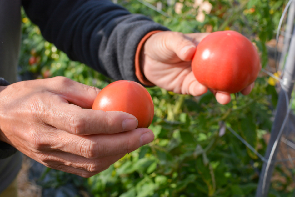 代表的な品種のひとつが、「ひばりトマト(サンロード種)」。栽培が難しく病気にも弱い繊細な品種ですが、ミネラル豊富な土壌と気候、そして長年培われた栽培技術によって、その個性が引き出されています。また、カラフルなミニトマトも栽培しており、色合いの違いだけでなく、それぞれ味わいも大きく異なるのが特徴です。