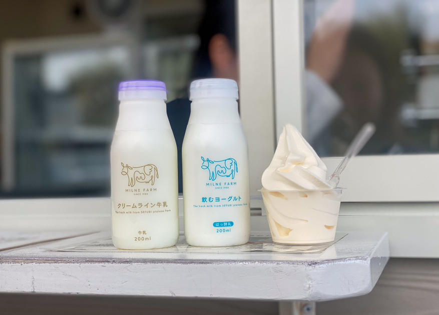 搾りたての生乳は自社工場で低温長時間殺菌・ノンホモジナイズ製法により丁寧に加工され、濃厚でコクのある牛乳やヨーグルト、チーズ、ソフトクリーム、アイスクリームなど多彩な乳製品として届けられています。牛乳は、余計な加工がされていないため、生クリームがほんのり表面に浮いてできる『クリームライン』が特徴的で、味はほんのり甘い仕上がりです。