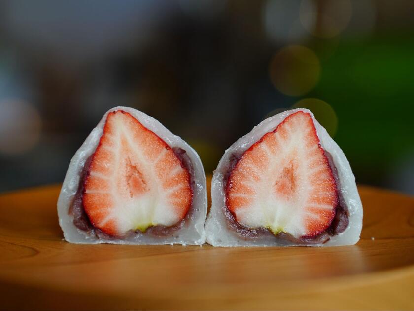 桶川市で、和菓子職人・パティシエ・バリスタの職人3兄妹弟がこだわりのお菓子やコーヒーを展開するユニークなショップがエキュート大宮に初出店。数々の受賞歴を持つ、本庄市の久米原農園の「あまりん」を使用した、格別ないちご大福です。甘さの濃い「あまりん」に合うよう、北海道産「エリモ小豆」で作った自家製のつぶあん、滋賀羽二重餅米の生地で包みました。いちごが包まれているからこそ味わえる三位一体のハーモニーは、正統派ながらプレミアムな一品です。