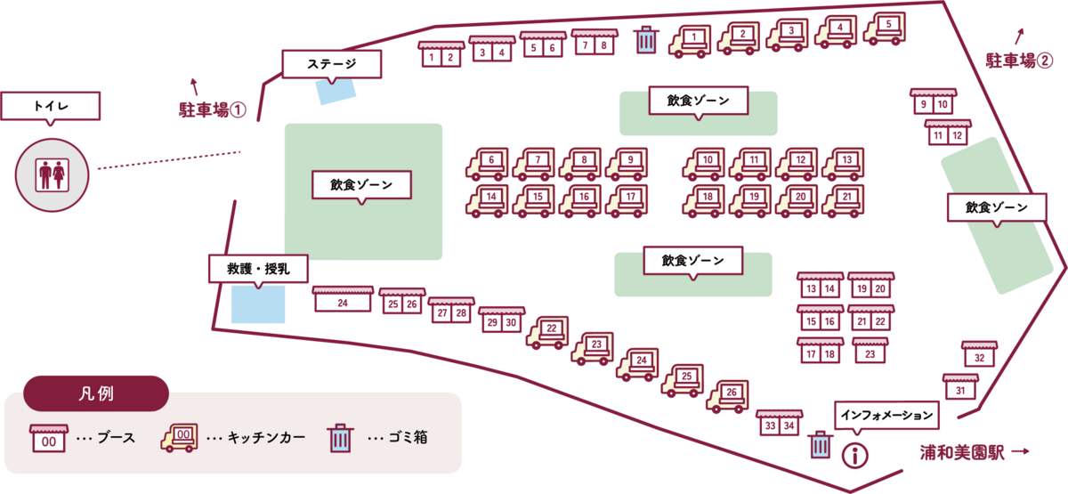 - 浦和美園駅から埼玉スタジアム2〇〇2にかけて、様々なキッチンカーをご用意しており、駅からゆっくり歩きながら、イベントを楽しむことができます。
