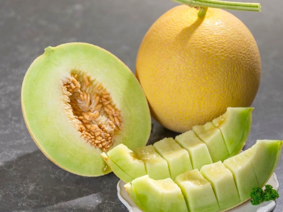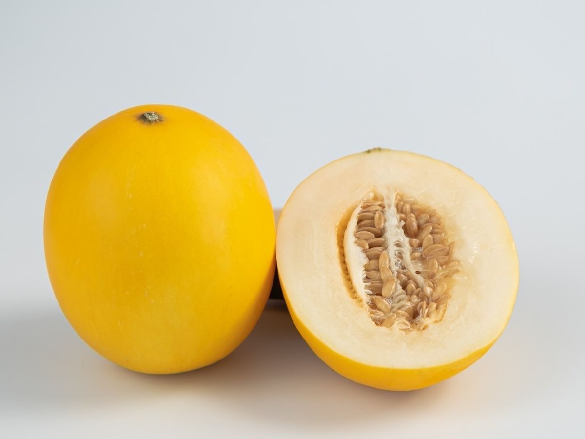 網目のない、つるっとした果皮の黄色いメロン。大きさはりんごより少し大きいくらいのお手軽サイズです。