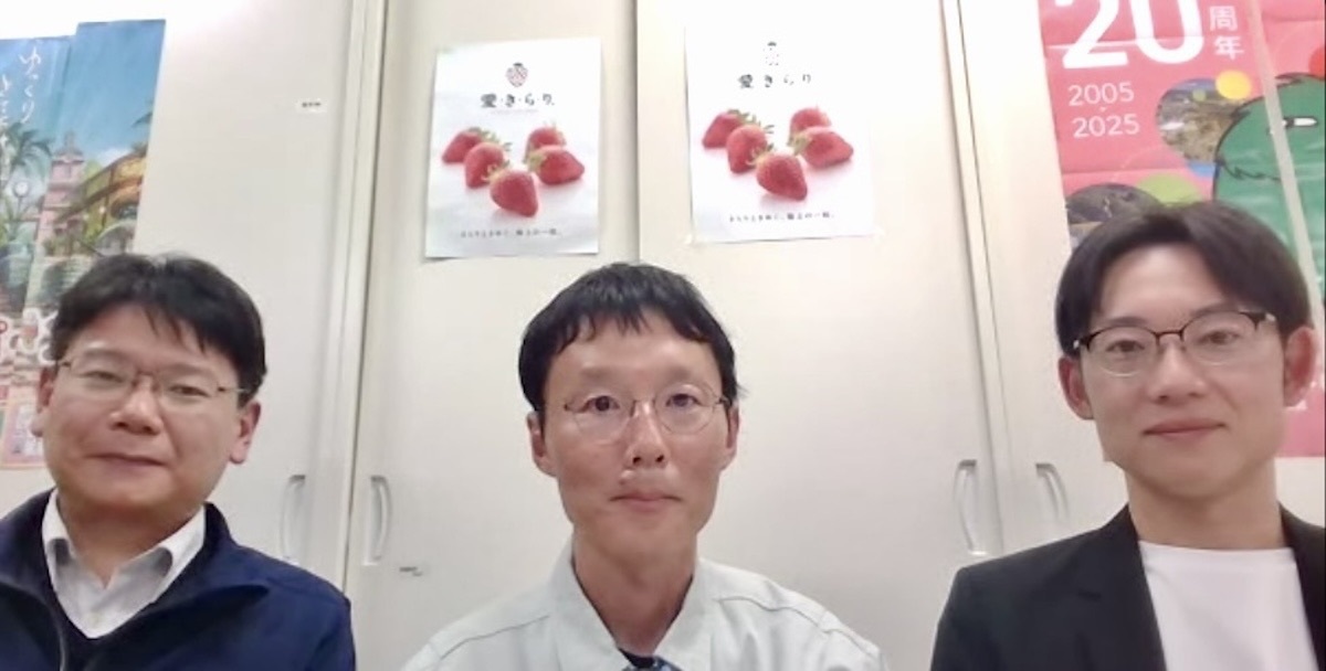 今回は愛知県農業総合試験場でイチゴ育種を担当する野菜研究室 主任研究員の山本 拓さん、「愛きらり」の開発に携わった愛知県農業総合試験場 技術推進室 専門員の松浦 元樹さん、「愛きらり」のブランド化に携わる愛知県園芸農産課 主査の宇佐見 仁さんにお話を伺いました。