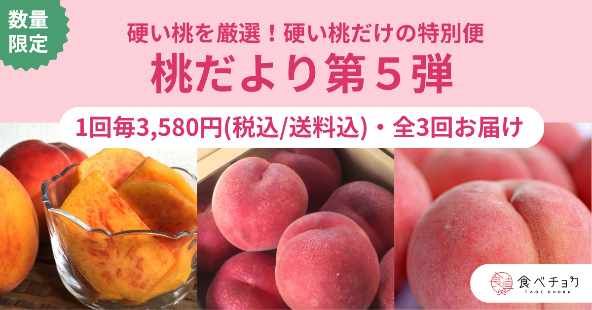 「3種の桃だより第5弾」は2025年7月19日(土)に販売終了となります。200セットの数量限定です。ぜひこの機会にご利用ください!