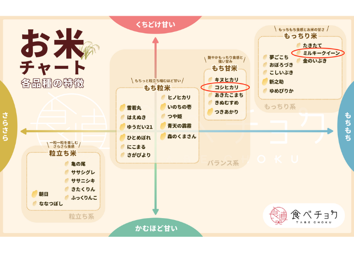今回お届けする新米それぞれが、どんな特徴があるかが一目でわかる「お米チャート」をお届けします!