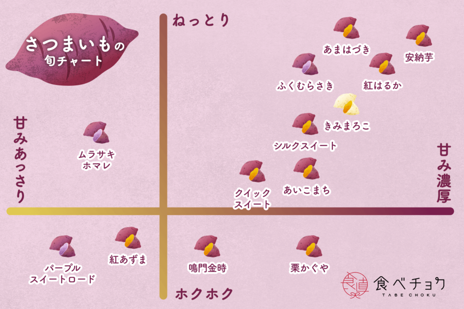 さつまいもは品種によって甘さも食感も様々。品種ごとの味わいを食べ比べてみるのもよいかもしれませんね♪