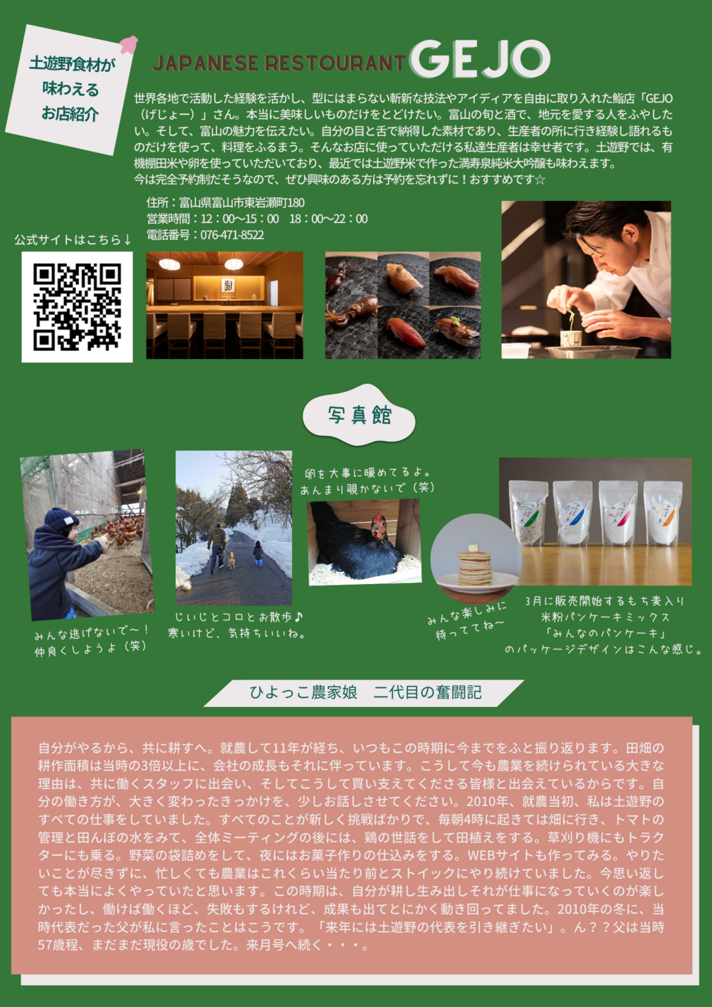 今月から発売した富山の有名な酒蔵枡田酒造さんで作っていただいた土遊野産有機棚田米イセヒカリを100%使用した「満寿泉 純米大吟醸~Do you know土遊野~」の紹介もしています。