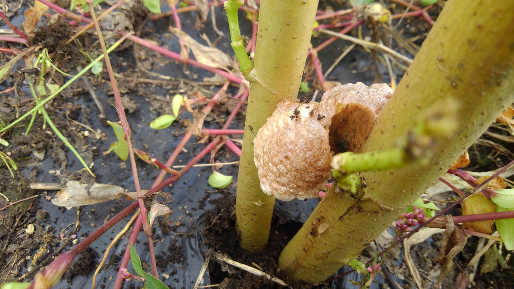 富士山麓オーガニック #カマキリ #高い場所にあると雪が多い冬になるとか #降雪バロメーター