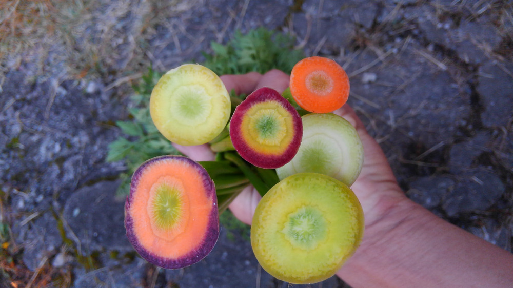 紫や黄色は切ったときに中の色が違うもの、色の濃さ(品種)の違うものもあり、やはり味も違います!