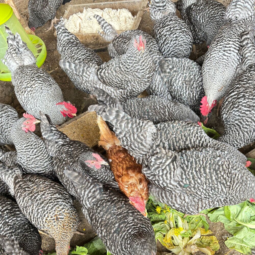 この土地の恵みを鶏たちに還しています。