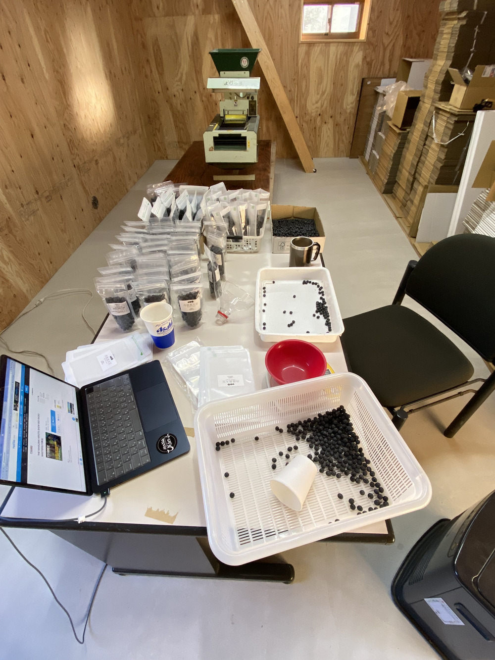 毎年28日までにはお届けできるよう黒豆の発送を行っているのですが、今年は昨年以上に多くのご注文をいただき、選別→検品→袋詰め→梱包→発送を毎日行いまして、ほぼご注文の発送が終了になって参りました。