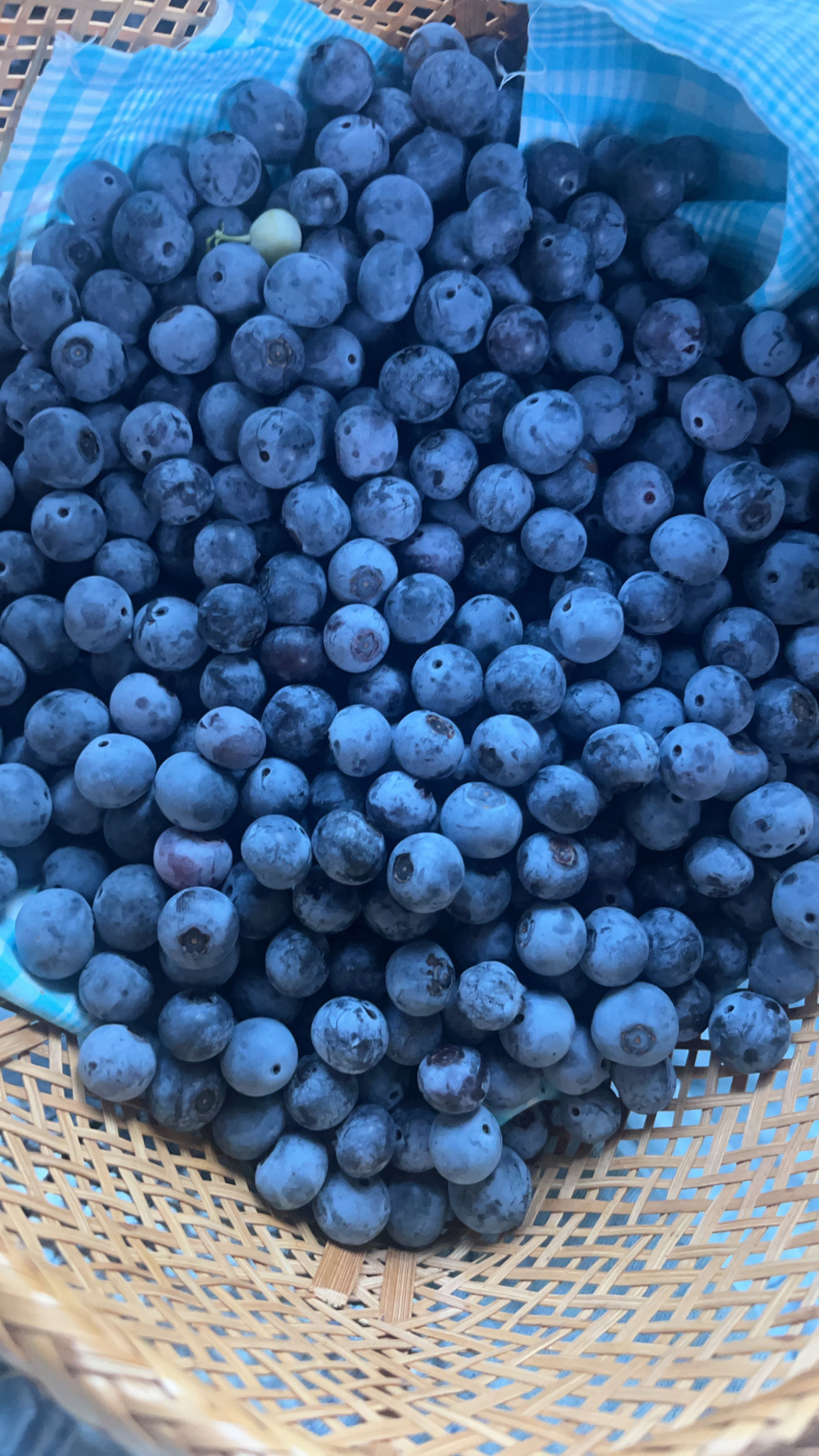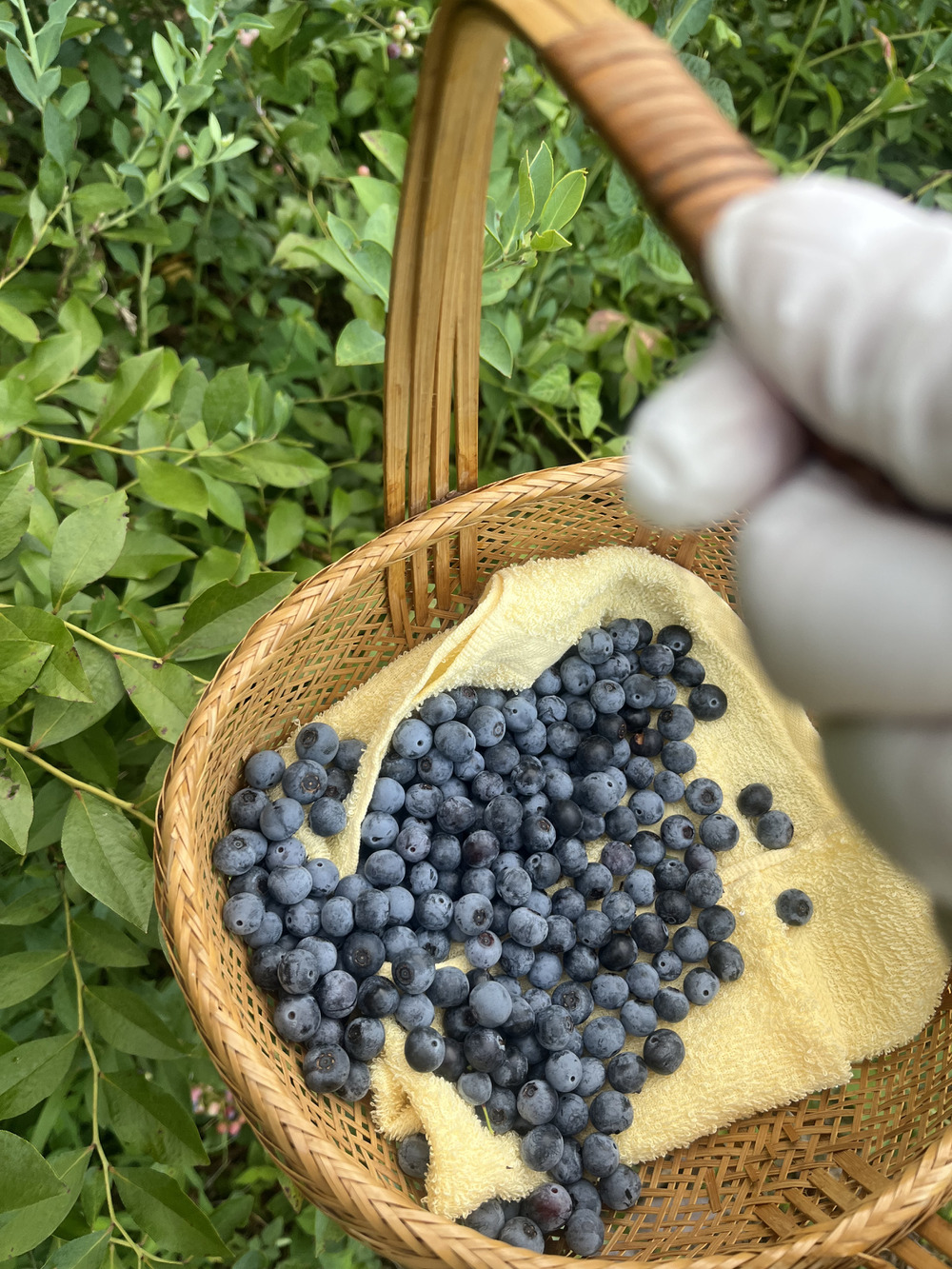収穫籠は蒸れないように自然素材でタオルをひいて優しく収穫しています