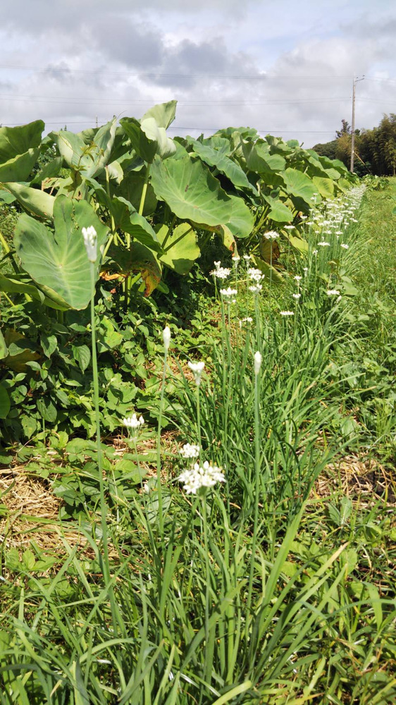 何度かお湿りがあり、長く厳しい干ばつが解消されました。水分が必要なサトイモは葉っぱの色艶が一気によくなりました。先月は例年になく成長が良くなくて丈が低かったのですが、伸びました。何度か灌水しましたが、少しでも雨があった方がより元気になります。