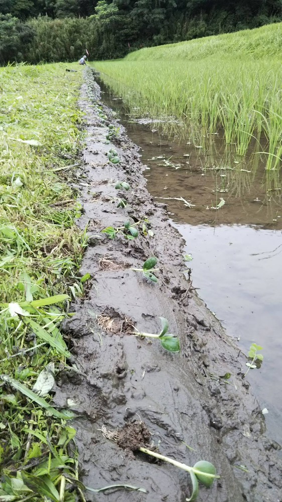畔に除草剤を撒かないで、大豆を育ててはどうか?