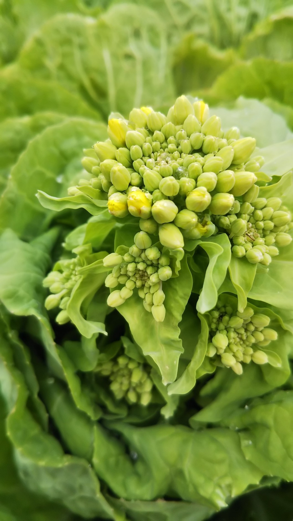 この写真は左がチンゲンサイ、右のアップが松島新2号白菜です。