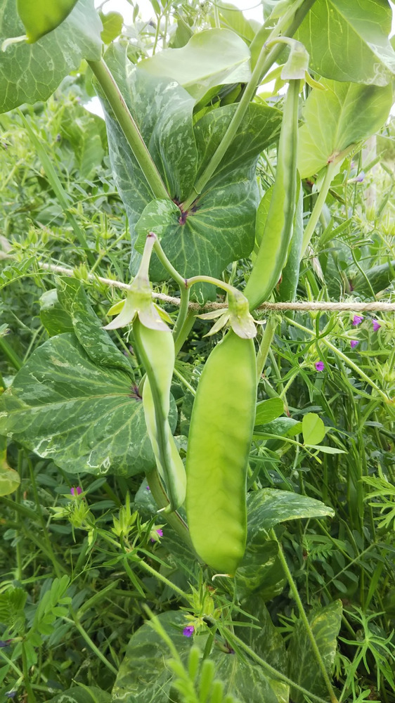 強風に度々あいながらエンドウが実ってきました。今年は特に荒れる日が多く擦れ傷が見られますが、収穫できています。