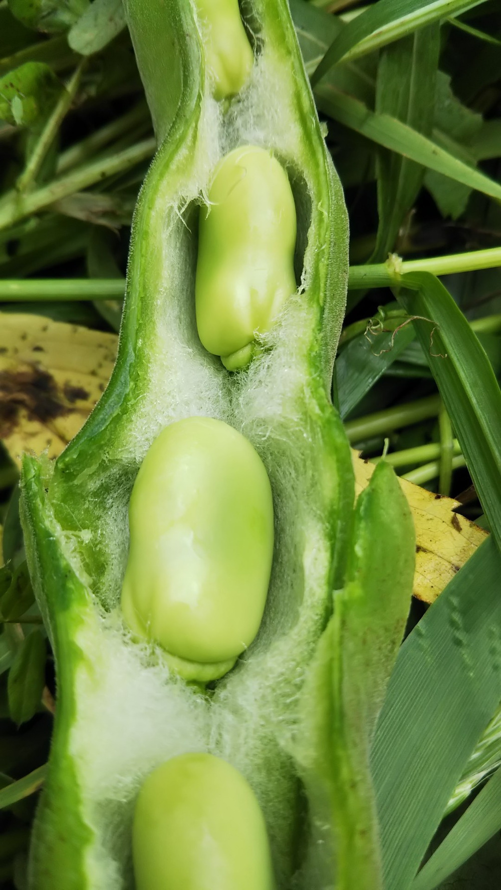 自分の畑でとれた種をまいて、育てているソラマメが収穫最中です。