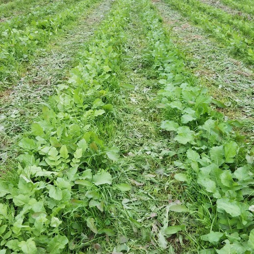 9月上旬から中旬にかけ順々にみのわせ大根、聖護院大根、三浦大根、紅芯大根を播種。