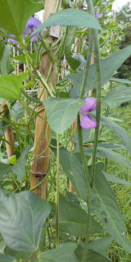 暑さが本番になりますと、元気に育つつる性のマメです。熱帯性のため暑さにも乾燥にも強いです。さやはとても長く40センチほど。