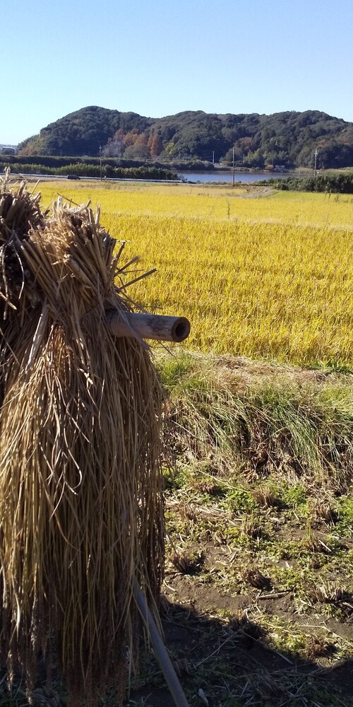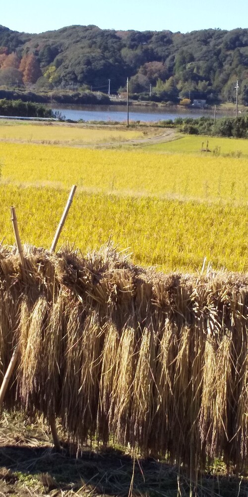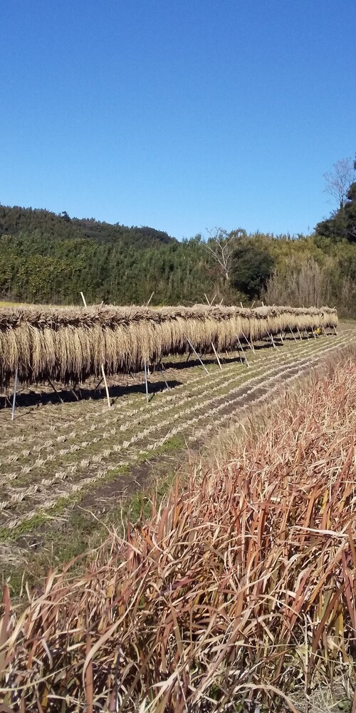 もち米、ミドリモチのみ田んぼに残っています。もち米は米粒が白濁するまで干します。