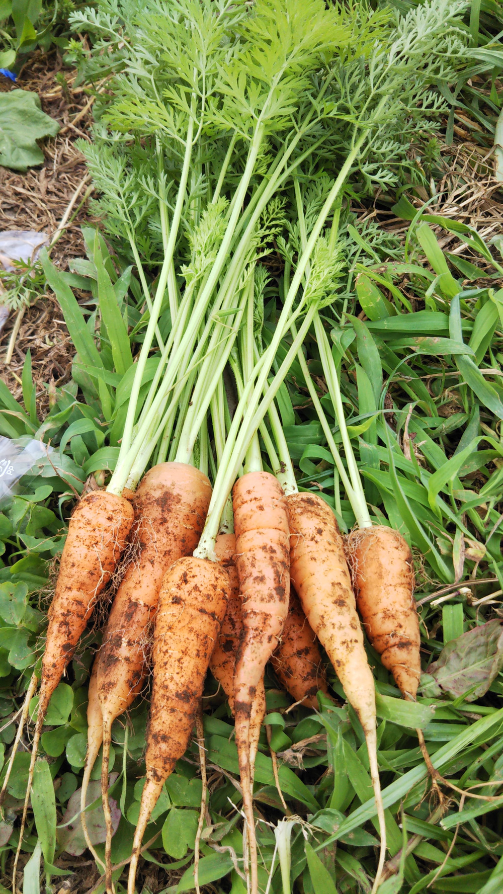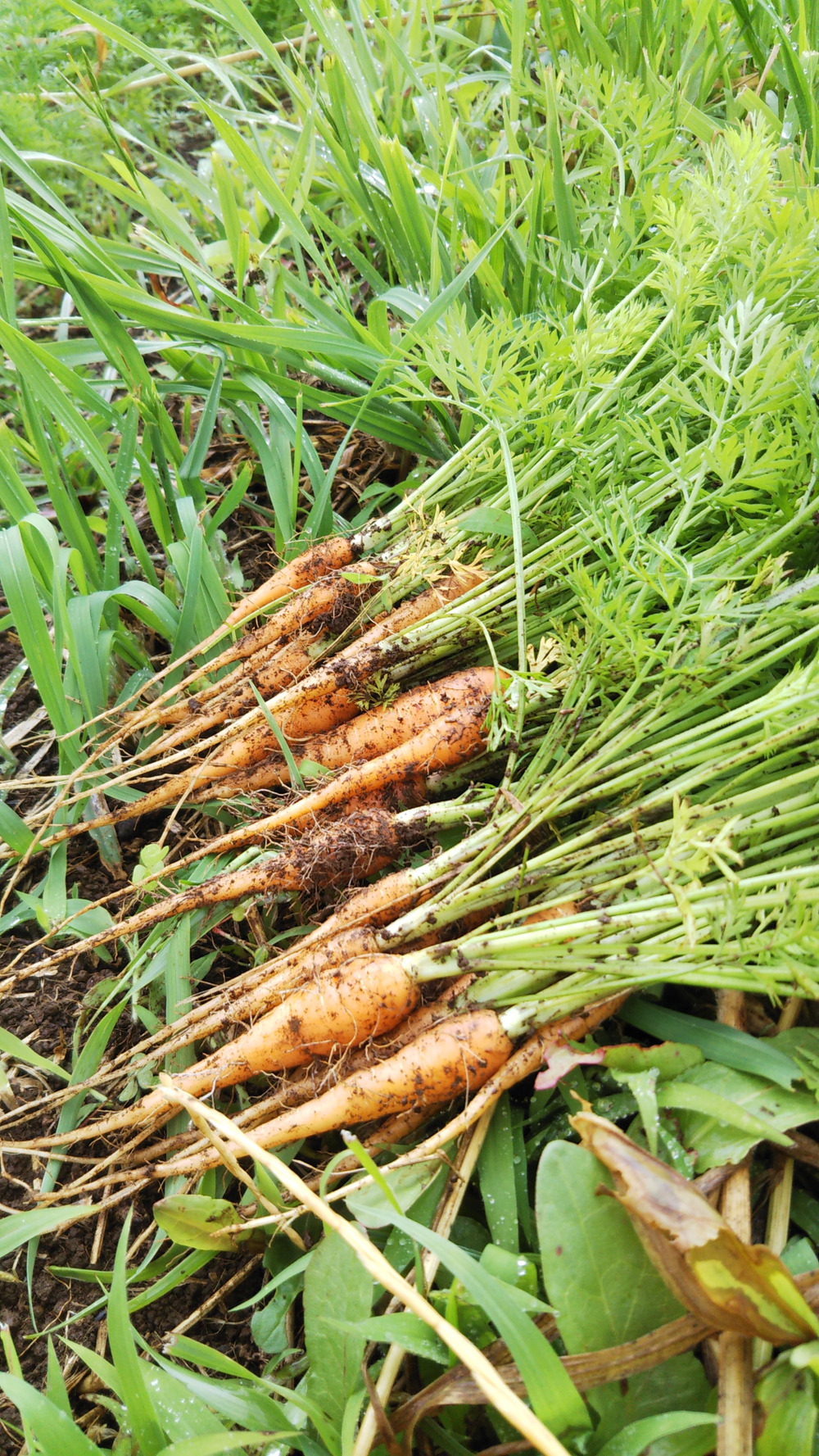 まるごと食べれるニンジンです。ニンジンは大きくなるのに、日数を要します。少しずつ間引き菜として収穫していきます。