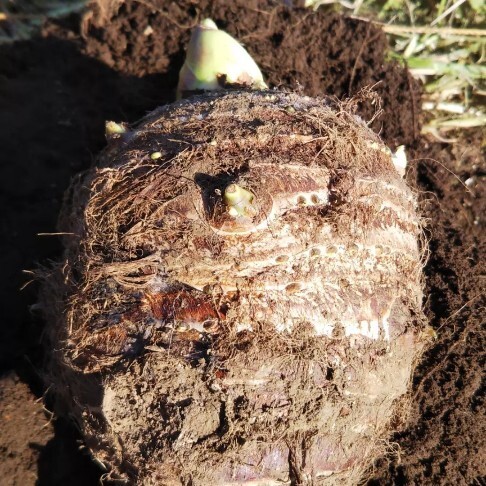 種イモの上に、ひとつイモがつき、新たな親芋になります。そのイモの周りに子芋がつきます。また、子イモに孫イモがつきます。