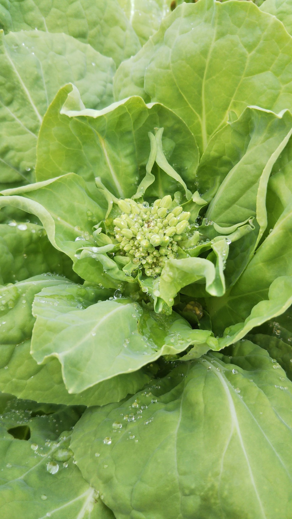 さまざまな菜っぱのつぼみが伸びてきました。チンゲン菜、小松菜、白菜、みんなそれぞれ味わいが違います。