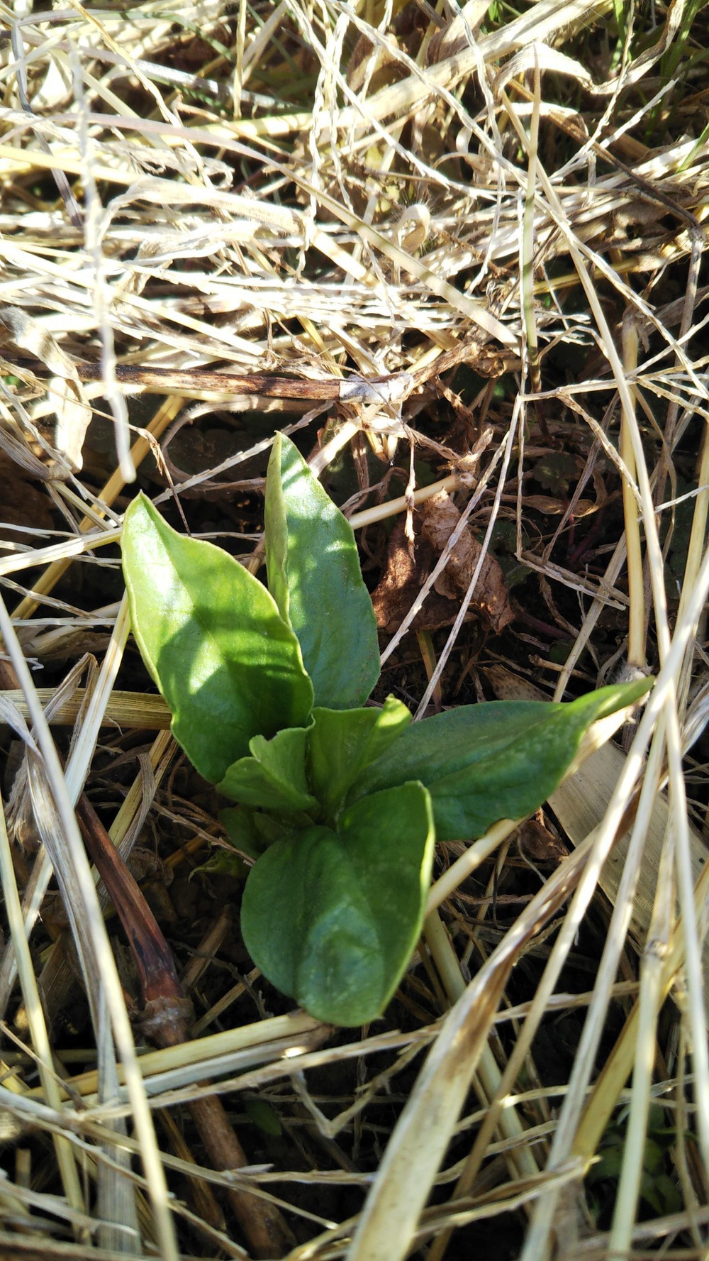 去年の夏に茂った(草)枯れ草の布団をかけているような様子です。