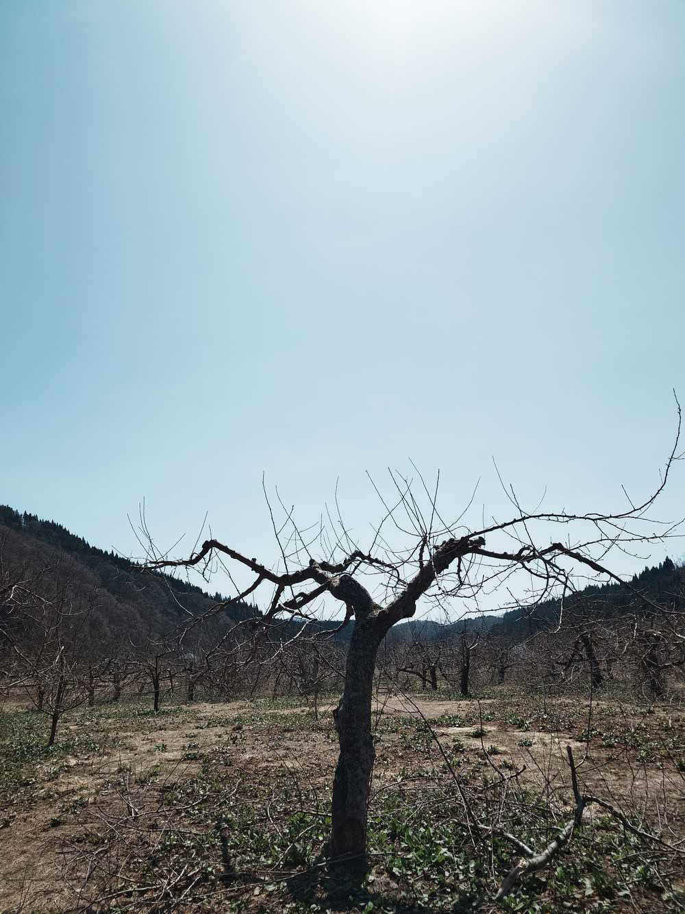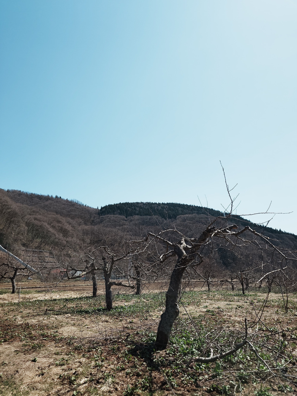 2週間前まで雪で白かった畑も、一気に春らしい景色になりました。ここ鹿角市でも桜が咲き始め、芽吹いてきたりんごの花芽に今年への期待を寄せつつ、剪定作業を急ピッチで進めています。
