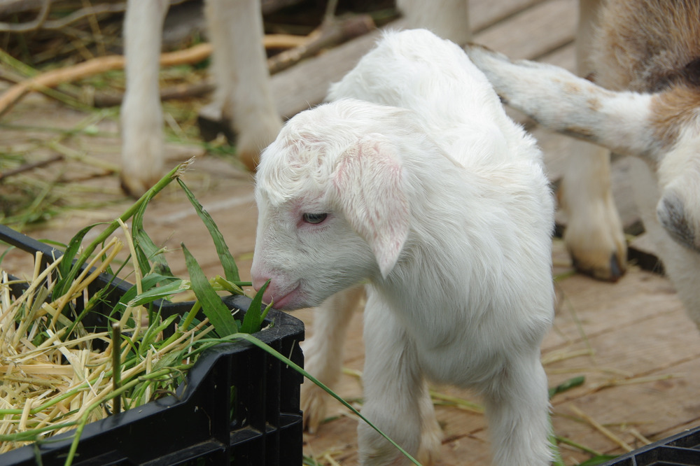 好奇心旺盛で、動き回っては母山羊のお乳を飲んだり、うたた寝したり🐐 真似事なのか、もう草をハミハミする仕草も見られます🍀 何をやっても可愛いです。