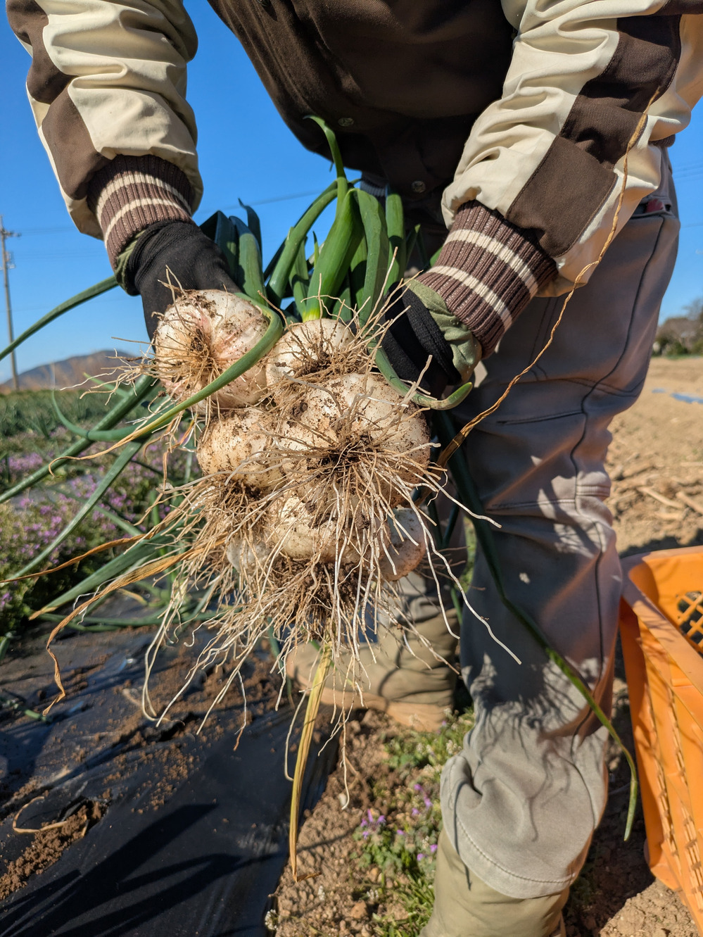 【栽培期間中農薬不使用】〜超極早生・浜笑〜春の葉付き玉ねぎ2キロ