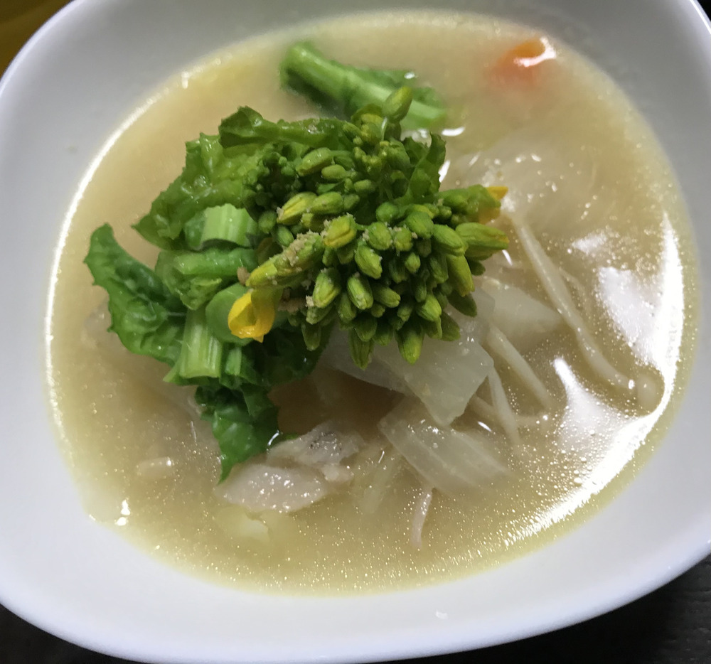 豚汁にちょこん。