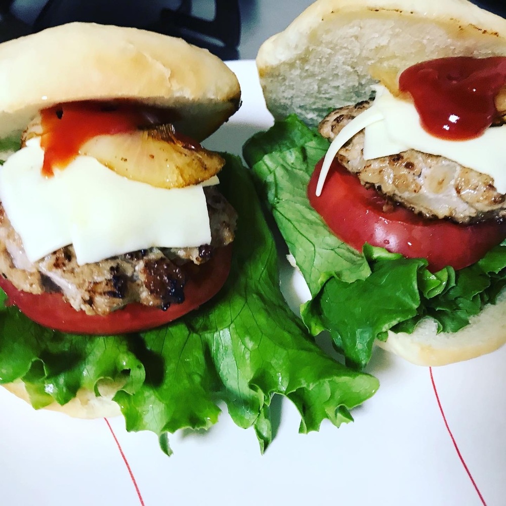 昨日焼いたバンズは半分にカットしてフライパンの脇で温めます♪