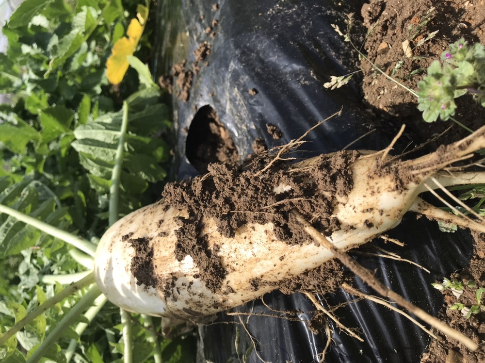 この時期の大根はとう立ちしやすかったり、虫にかじられたりするのでそう沢山は栽培しておりませんが、