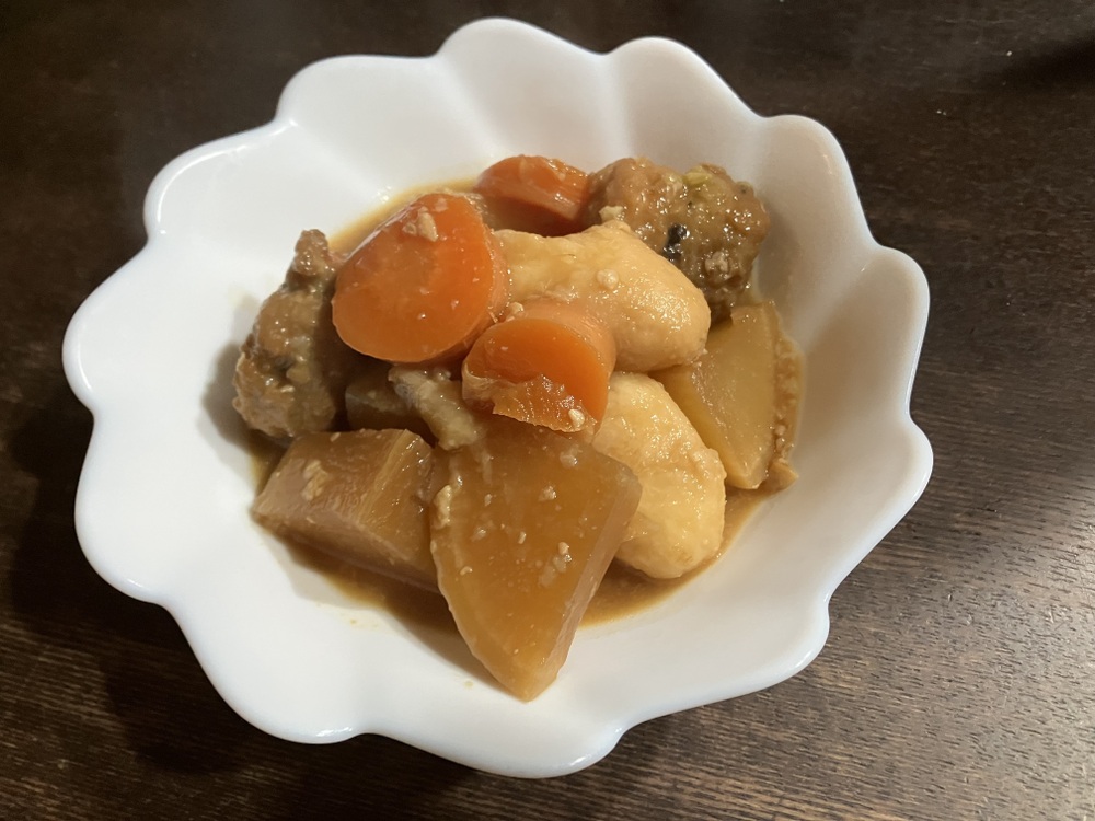 大根、人参、里芋、こんにゃく、卵などを入れてくつくつ。