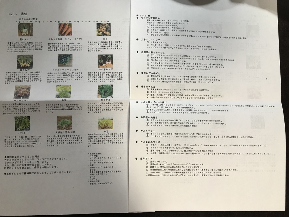 12月のお届けのお野菜の種類やレシピをお知らせいたします。