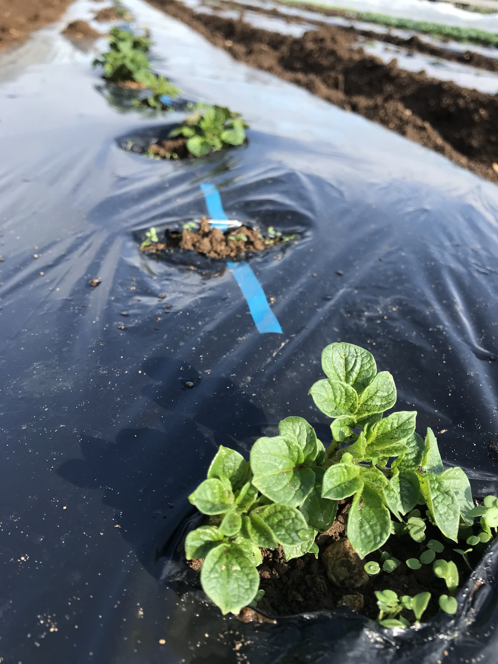 じゃがいも(グラウンドペチカ)の芽がぴょこぴょこ出てきました🙌