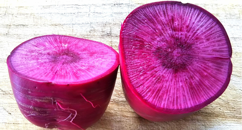 紅大根は、眼精疲労などに効果的のようです。また、冷え性を解消する働きや抗酸化作用もあるので、ダイエット効果や老化防止も期待できるようです。便秘予防や辛味成分が殺菌効果などにも✨