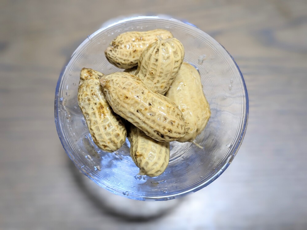 ①圧力鍋にお水と落花生をに入れて、圧力をかけます。