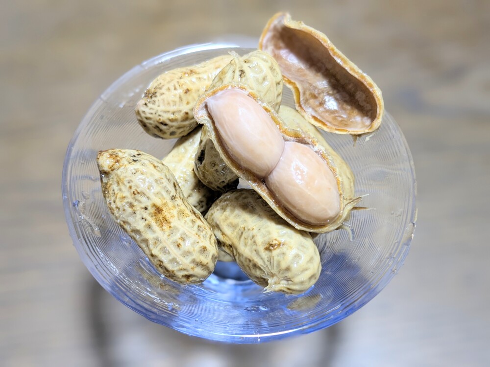 ③圧力抜けたら茹で汁ごと多めお塩を入れて一晩、冷蔵庫に入れておきます。(お塩を落花生に浸透させる為)出来上がりです。
